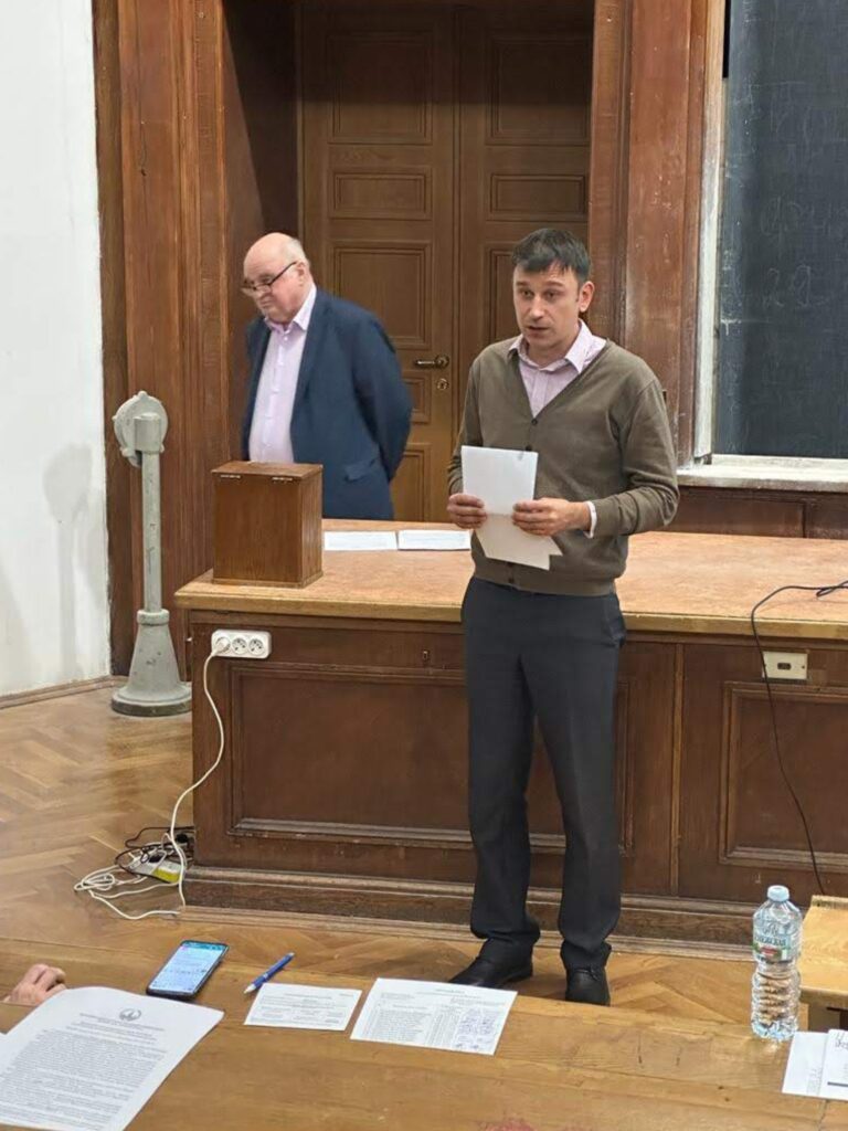 На заседании выступили официальные оппоненты диссертации д.ф.-м.н. доцент Дамдинов Баир Батуевич (Институт инженерной физики и радиоэлектроники Сибирского федерального университета, г. Красноярск), д.ф.-м.н. профессор Есипов Игорь Борисович (Российский государственный университет нефти и газа имени И.М. Губкина, г. Москва) и д.ф.-м.н. доцент Ряполов Пётр Алексеевич (Юго-Западный государственный университет, г. Курск).