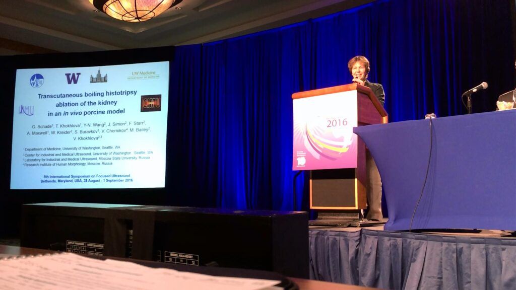 In August 2016 LIMU Heads Vera Khokhlova and Oleg Sapozhnikov presented lectures at the 5th International Symposium on Focused Ultrasound (FUSF16). The Symposium was organized by the Focused Ultrasound Foundation in Bethesda, Maryland, USA.