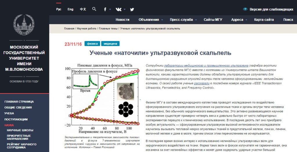 LIMU PhD student Pavel Rosnitskiy received a Student Award of 2016 from the Acoustical Society of America to assist the research of promising graduate students in acoustics. He was also recognized for the best 2015 young scientist project in the MSU contest established by O.V.Deripaska  with the project “A series of articles on the study of nonlinear HIFU fields in non-invasive ultrasound surgery”. And published his first paper in IEEE UFFC journal. Congratulations Pasha!