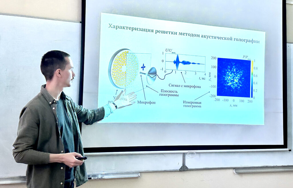 Shamil’s work was devoted to the use of two-dimensional antenna arrays for ultrasound imaging and physical impact on objects in an inhomogeneous medium and was carried out under the scientific supervision of Oleg Sapozhnikov (reviewed by Petr Yuldashev).