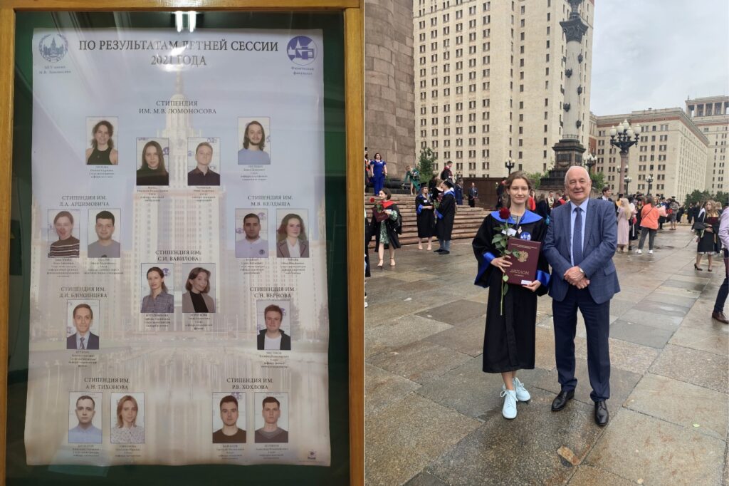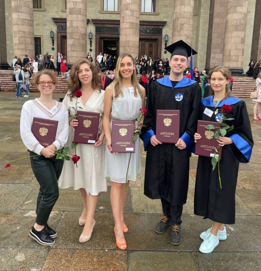 On the 21st of June, a solemn ceremony of awarding diplomas to graduates of the Faculty of Physics took place at the Moscow State University (MSU). All our graduates of the master’s program-2022 Elena Konnova, Liubov Kotelnikova, Polina Pestova, and Daria Chupova were awarded diplomas with honors by the rector of MSU. Fedor Nartov, Oleg Solontsov, Nikita Falkov, and Egor Korovko successfully completed the undergraduate program and got bachelor’s degree. Congratulations to LIMU graduates on their diplomas!