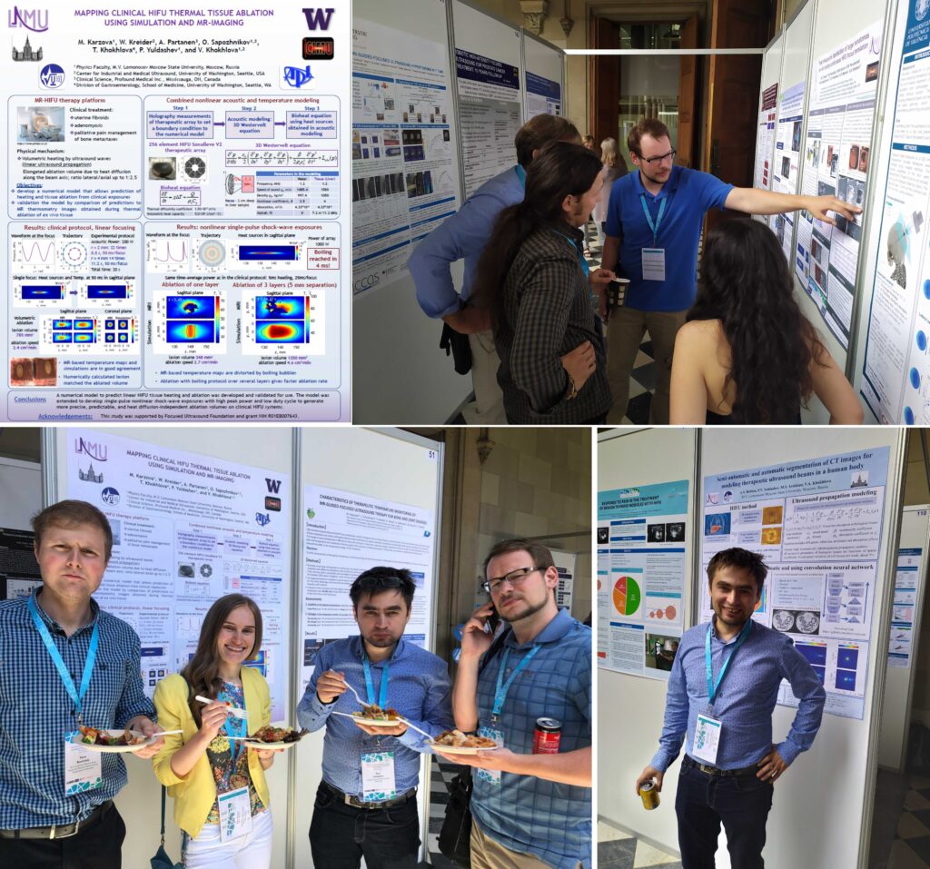 The LIMU team participated actively in the symposium. Vera Khokhlova, together with her colleague from Oxford Robin Cleveland, organized the scientific program. LIMU delegates to the symposium were researchers Sergey Tsysar, Petr Yuldashev, Maria Karzova, and Vera Khokhlova as well as the PhD student Pavel Rosnitskiy and MS student Ekaterina Ponomarchuk. Altogether, 13 abstracts were presented co-authored with LIMU staff.