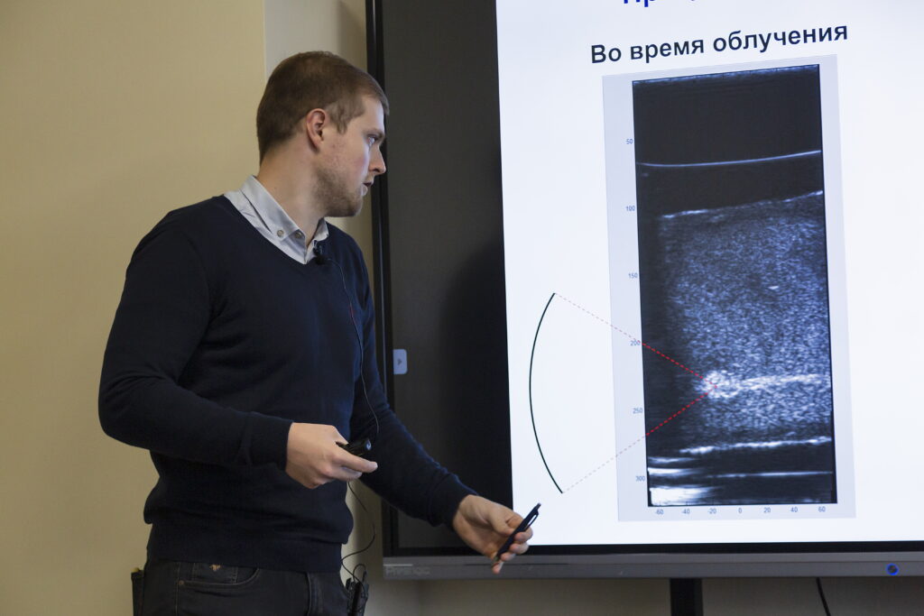 The LIMU team participated actively in the conference. Research fellows, PhD students and Master students of LIMU gave 19 talks in 4 various sessions. O.A. Sapozhnikov, A.V. Nikolaeva, D.A. Nikolaev, and L.M. Kotelnikova took part in “Physical acoustics” session. M.M. Karzova, P.V. Yuldashev, and E.O. Konnova participated in the session of “Nonlinear acoustics”. S.A. Tsysar and S.A. Petrosyan presented their scientific results in the “Ultrasonic technologies” session. V.A. Khokhlova, T.B. Krit, P.B. Rosnitskiy, A.A. Krokhmal, E.M. Ponomarchuk, Sh.A. Asfandiyarov, A.D. Ivanova, A.S. Bobina, P.A. Pestova, and D.D. Chupova gave talks in the session “Biomedical Applications”.