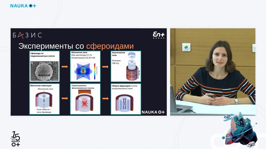 As part of the All-Russian Festival of Science on October 10, 2020, LIMU PhD student Alisa Krokhmal gave an online lecture on the topic “Ultrasound as a tool for biofabrication”. In bioengineering, the direction of biofabrication is actively developing, when viable tissues are formed from tissue spheroids – conglomerates of living cells about 0.2 mm in size – which in the future can replace diseased human tissues. The lecture describes the role of ultrasound and the use of acoustic radiation force to move tissue spheroids and form three-dimensional tissue engineering constructs. This approach in medicine will completely abandon the use of natural or synthetic biomaterials, the clinical use of which is associated with the risk of rejection and development of inflammatory processes.