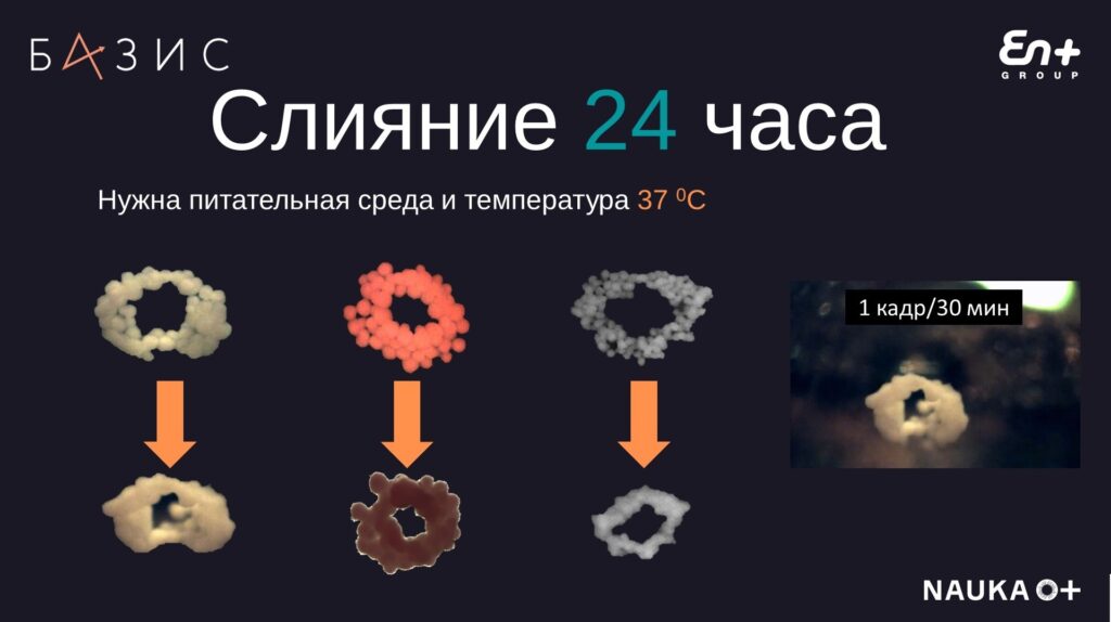 To see clearly the process of biofabrication, you can visit the virtual laboratory En + Group, which was created with the intellectual support of the “BAZIS” Foundation for the Development of Theoretical Physics and Mathematics, where the development of Moscow State University and 3D Bioprinting Solutions is presented. In the virtual laboratory, you can learn how the biofabrication process takes place and independently assemble a tube (artificial blood vessel) from virtual tissue spheroids.