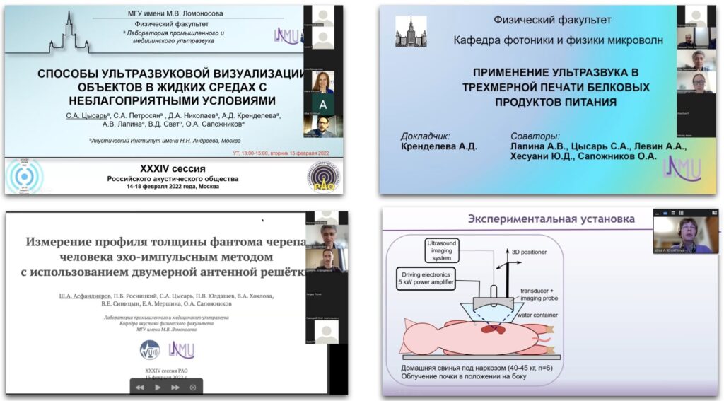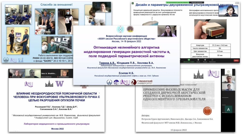 From February 14 to 18, 2022, the XXXIV session of the Russian Acoustical Society was held in a hybrid in-person/virtual format sponsored by the N.N. Andreyev Acoustics Institute in Moscow, Russia. The Session program was very rich and included 16 sections, covering various aspects in the field of modern acoustics, such as physical, medical and nonlinear acoustics, bioacoustics, ultrasound research, wave propagation and diffraction, etc.
