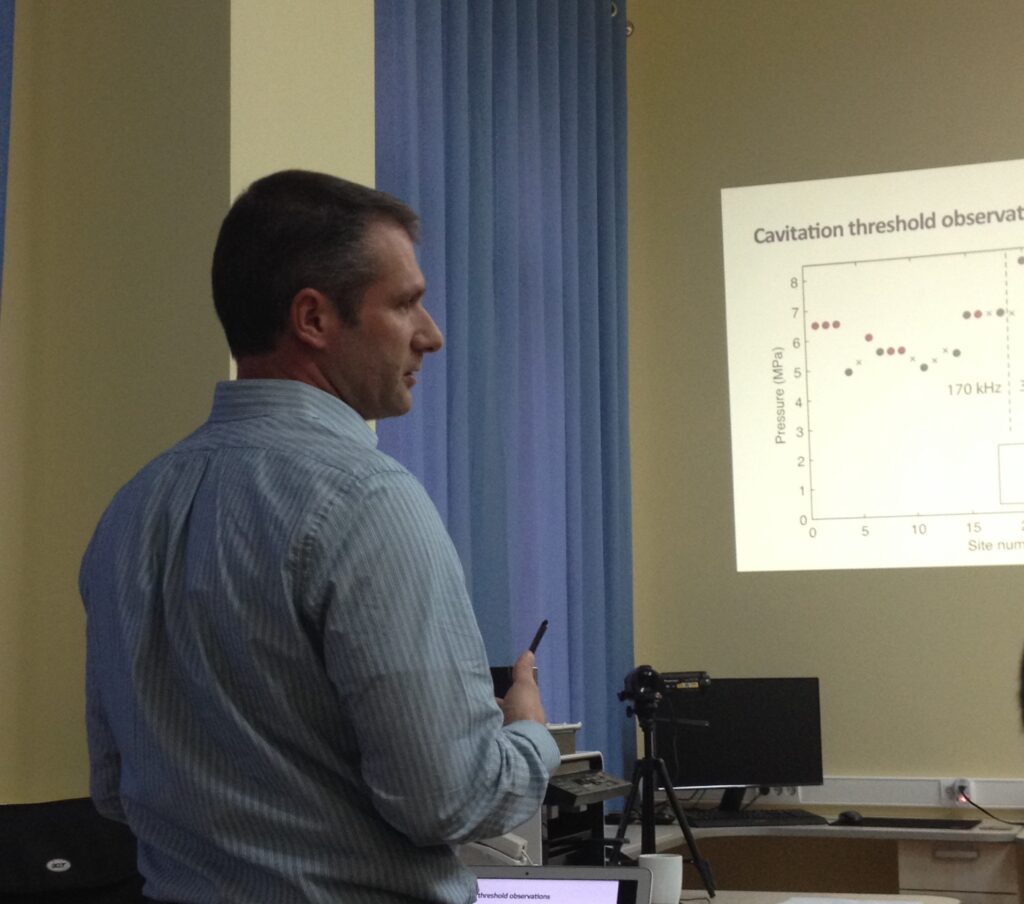 Dr. Adam Maxwell presented the latest achievements in non-invasive ultrasound surgery using a boiling histotripsy approach.
