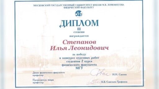 Ilya Stepanov received an award for the best project of the 2nd year students of the Physics Faculty of MSU