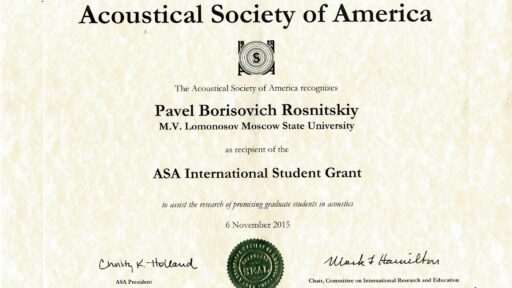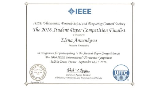 ASA Student Award, recognition on O.V.Deripaska MSU contest, paper in IEEE UFFC