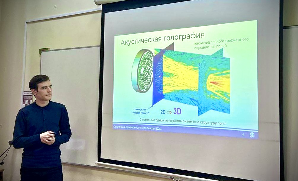 С 11 по 25 апреля 2025 г. в МГУ имени М.В. Ломоносова состоялась международная научная конференция студентов, аспирантов и молодых учёных «Ломоносов-2025». Секция «Физика» начала свою работу 15 апреля на физическом факультете МГУ и была открыта сотрудницей LIMU, лауреатом премии Правительства Москвы для молодых ученых 2025 г., Карзовой Марией Михайловной с лекцией о нелинейных акустических волнах с ударными фронтами в задачах аэроакустики и медицинских приложениях. В лекции были продемонстрированы новые методы исследования временной структуры акустических импульсов с ударными фронтами и возможности моделирования ударно-волновых полей современных излучателей медицинского ультразвука.