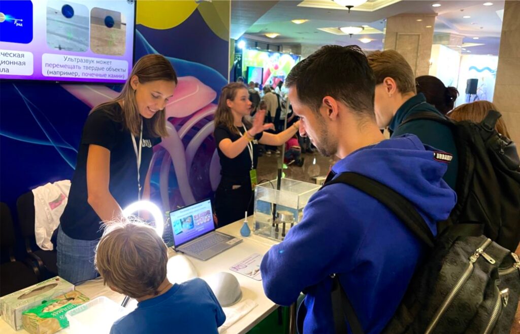 Студенты и аспиранты лаборатории подготовили увлекательный рассказ об ультразвуке и его применении в медицине, а дополняющие его эффектные экспериментальные демонстрации вызвали живой интерес посетителей. Более ста человек на протяжении трех дней фестиваля пообщались с представителями лаборатории на стенде и смогли в прямом смысле слова прикоснуться к удивительным эффектам, на которые способен ультразвук. Особенно радует, что значительную часть заинтересовавшихся посетителей составляли школьники — потенциальные будущие студенты и исследователи!