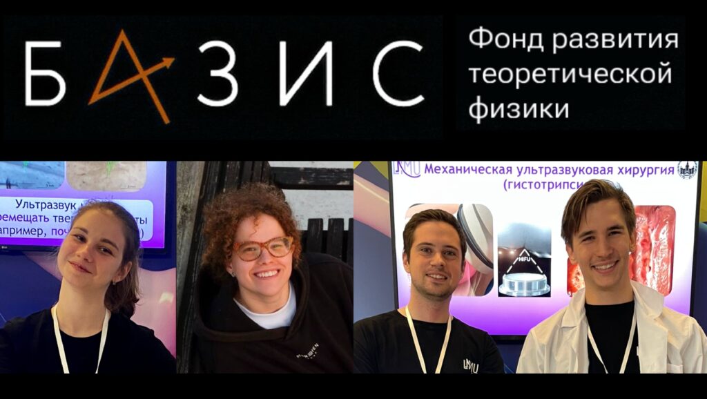 В этом году победителями конкурса стали наши студенты 4 курса специалитета Мария Сергеева и Степан Сорокин, а также студент 2 курса магистратуры Федор Нартов и аспирантка Полина Пестова. Экспертный совет фонда поддержал исследования ребят по направлениям их научной деятельности: Мария занимается численным моделированием параметрической генерации низкочастотных звуковых волн, Степан проводит исследования в области ультразвуковой диагностики лёгочных заболеваний, Федор занимается моделированием работы специализированных излучателей для повышения эффективности химиотерапии, а Полина проводит исследования в области теплового разрушения биоткани высокоинтенсивным фокусированным ультразвуком (HIFU).