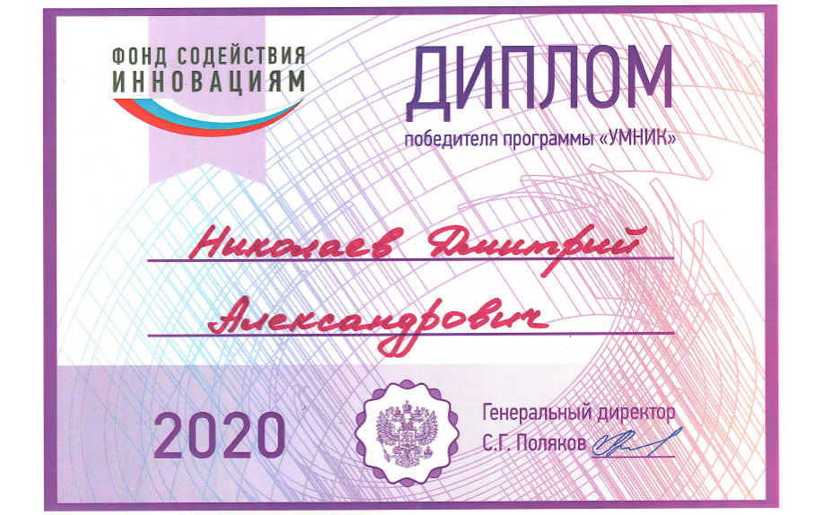 Также недавно прошел конкурс федеральной программы «УМНИК» Фонда содействия инновациям среди инновационных проектов студентов, аспирантов и молодых ученых, чьи научные результаты обладают существенной новизной и потенциалом коммерциализации. Проект Николаева Дмитрия «Разработка технологии измерения акустических характеристик материалов с помощью образцов небольшого объема» стал одним из победителей среди участников от МГУ имени М.В. Ломоносова. На выполнение проекта отводится 2 года, в результате планируется разработка технологии измерения частотной зависимости скорости звука и поглощения различных материалов.