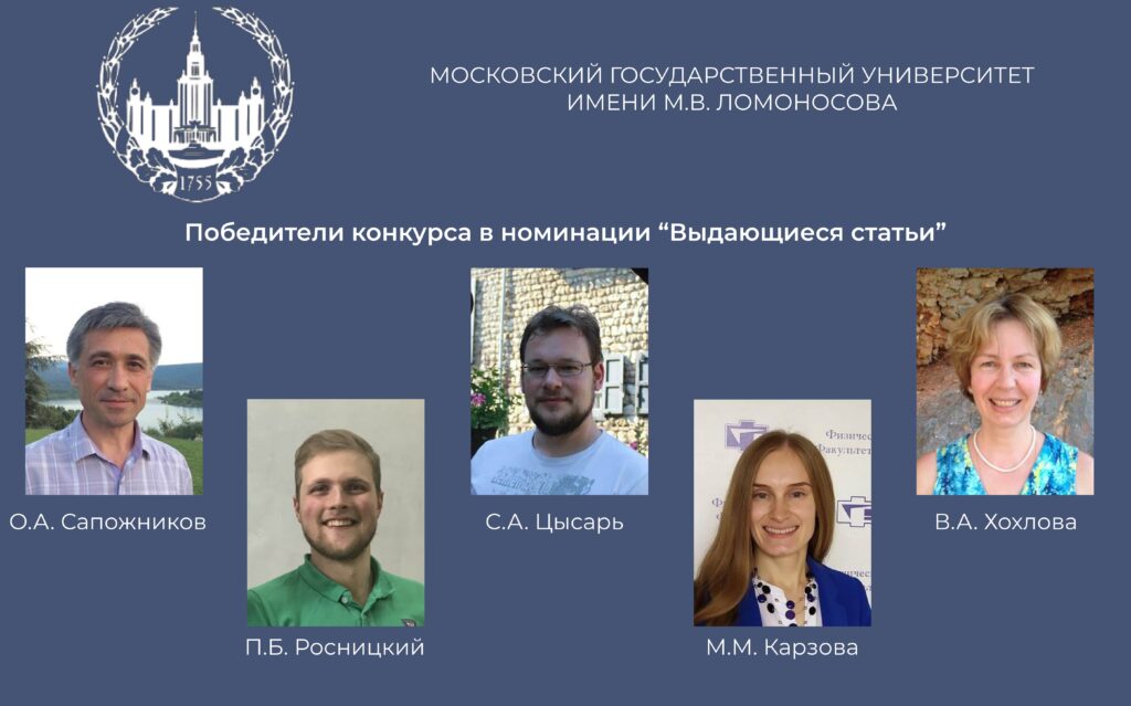 Осенью в МГУ проходил ежегодный конкурс работ, способствующих решению задач Программы развития Московского университета. Победителями конкурса в номинации «Выдающиеся статьи» стали 120 сотрудников Физического факультета, среди которых и члены LIMU. Награду получили О.А. Сапожников, В.А. Хохлова, С.А. Цысарь, М.М. Карзова и П.Б. Росницкий.