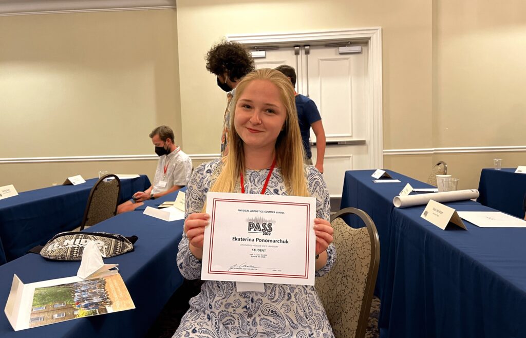 С 5 по 10 июня 2022 г. в Оксфорде (штат Миссисипи, США) прошла Летняя школа по физической акустике PASS 2022, организованная Американским Акустическим обществом (ASA) совместно с университетом Миссисипи. От нашей лаборатории в работе Школы приняла участие аспирантка Екатерина Пономарчук при поддержке тревел-гранта фонда «БАЗИС».