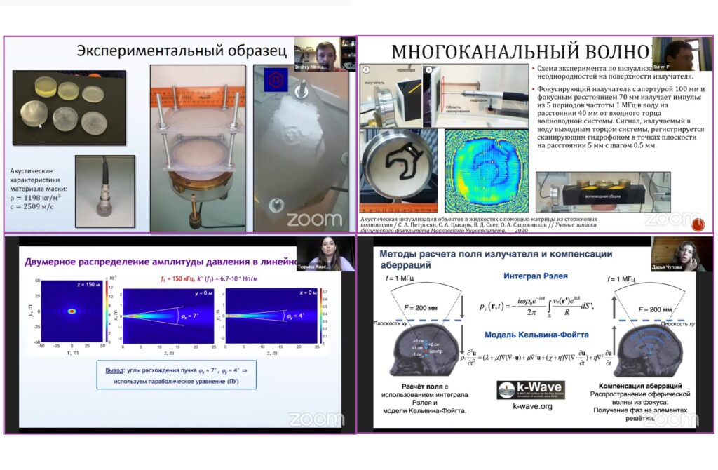 С 6 по 11 июня 2021 г. прошла XXXII Всероссийская школа-семинар «Волновые явления: физика и применения» имени А.П. Сухорукова («Волны-2021»), которая также проводилась в дистанционном формате. Программа школы включала 14 секций. От лаборатории LIMU участие в школе принимали студенты Л.М. Котельникова (секция «Акустоэлектроника и акустооптика»), Д.Д. Чупова, Ф.А. Нартов (секция «Био- и медицинские приложения волновой физики») и аспиранты Д.А. Николаев, С.А. Петросян, А.В. Тюрина (секция  «Акустика неоднородных сред»), А.А. Крохмаль (секция «Математическое моделирование в задачах волновой физики») и Ш.А. Асфандияров (секция «Био- и медицинские приложения волновой физики»).