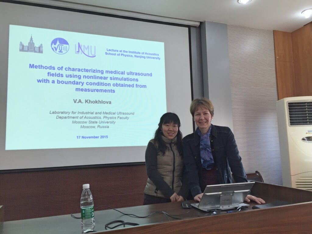 В.А. Хохлова и О.А. Сапожников посетили Нанкинский университет и выступили с лекциями в Институте акустики